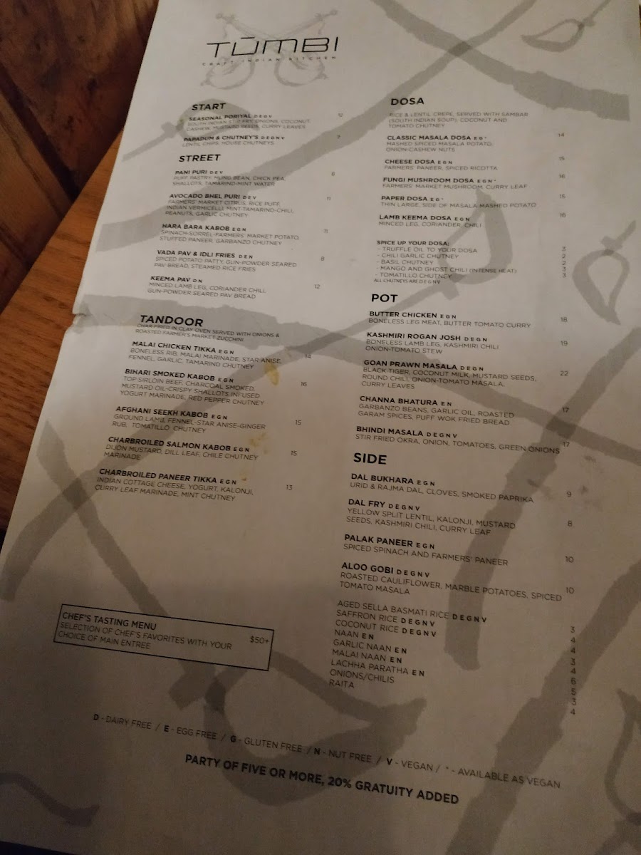 TUMBI Craft Indian Kitchen Menu (2025 Update)